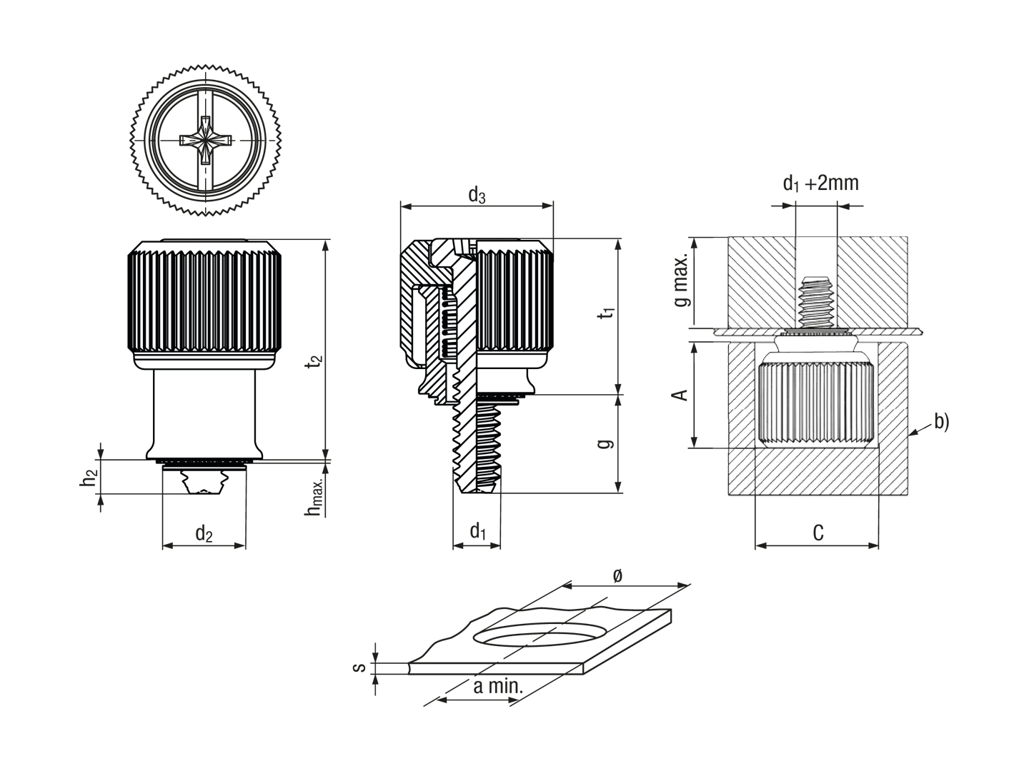 PEM® PF11 - Self-clinching captive panel screws with slot and Phillips form H recess, with UNC thread, for metallic materials