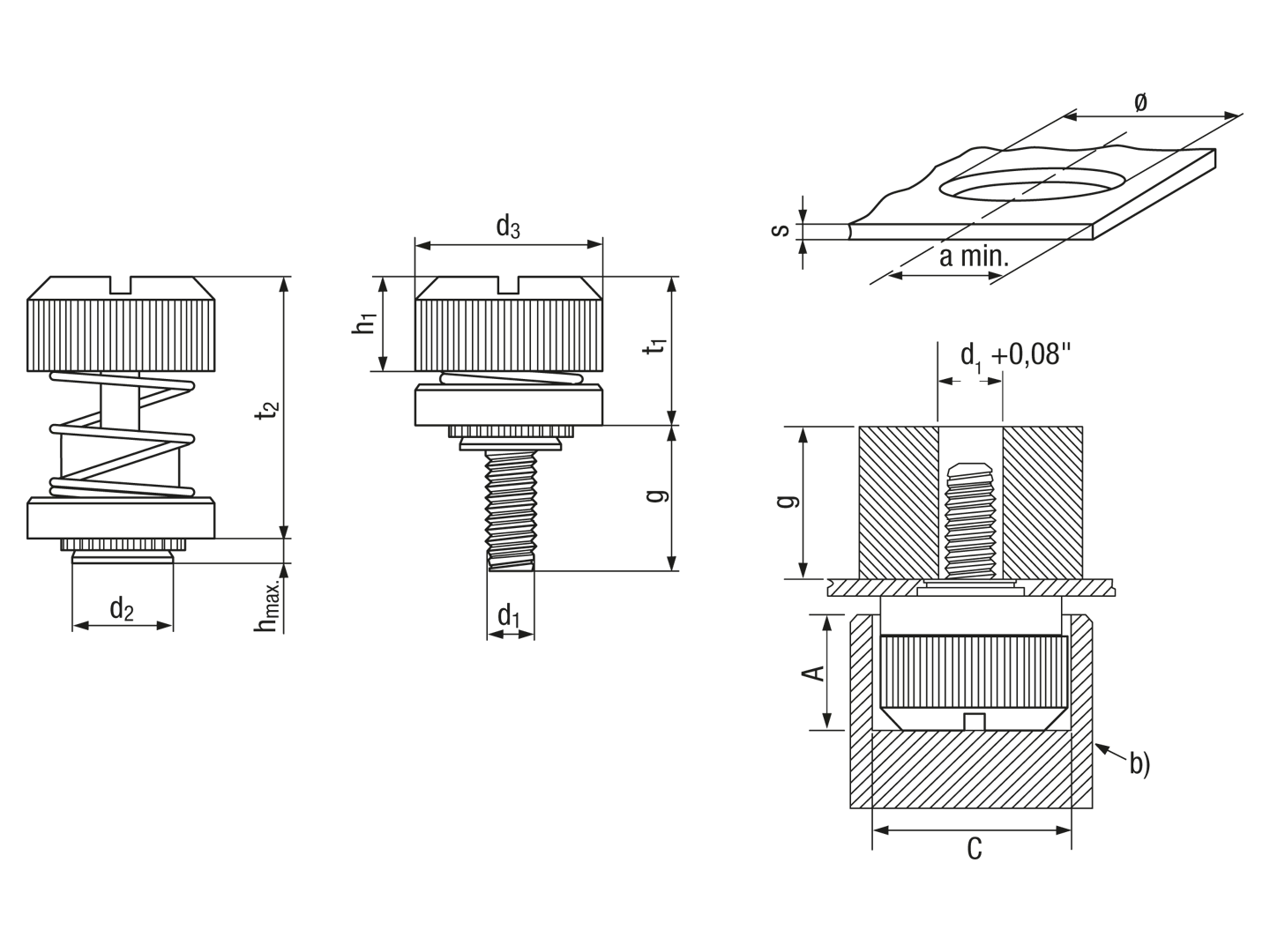 PEM® PF32 - Self-clinching captive panel screws with slotted head, with UNF thread, for metallic materials