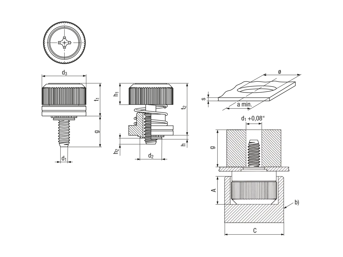 PEM® PF50 - Self-clinching captive panel screws with phillips recess form H, with UNF thread, for metallic materials
