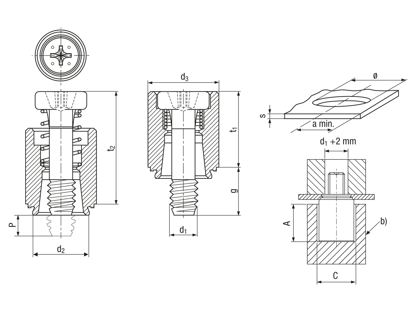 PEM® PFC2P - Self-clinching captive panel screws with phillips pan head, for metallic materials