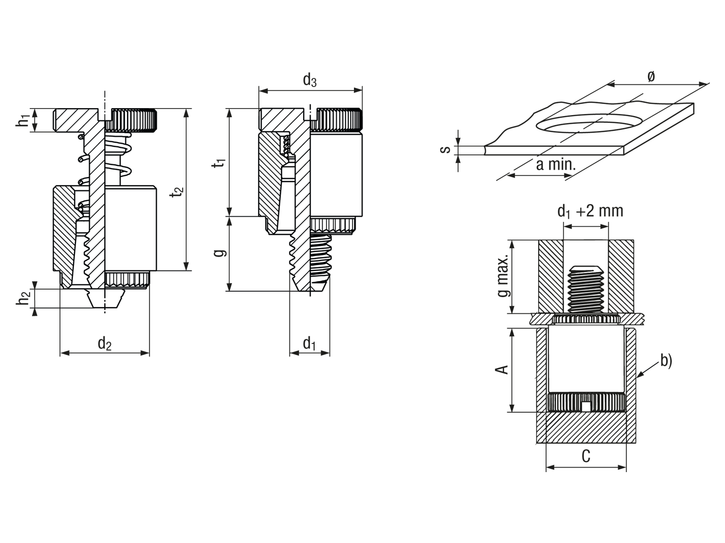 DescriptionProduct featuresRetainer / screw / spring: stainless steel AISI 300 Retaining ring: nylon For use in sheet hardness max. HRB 55Variants