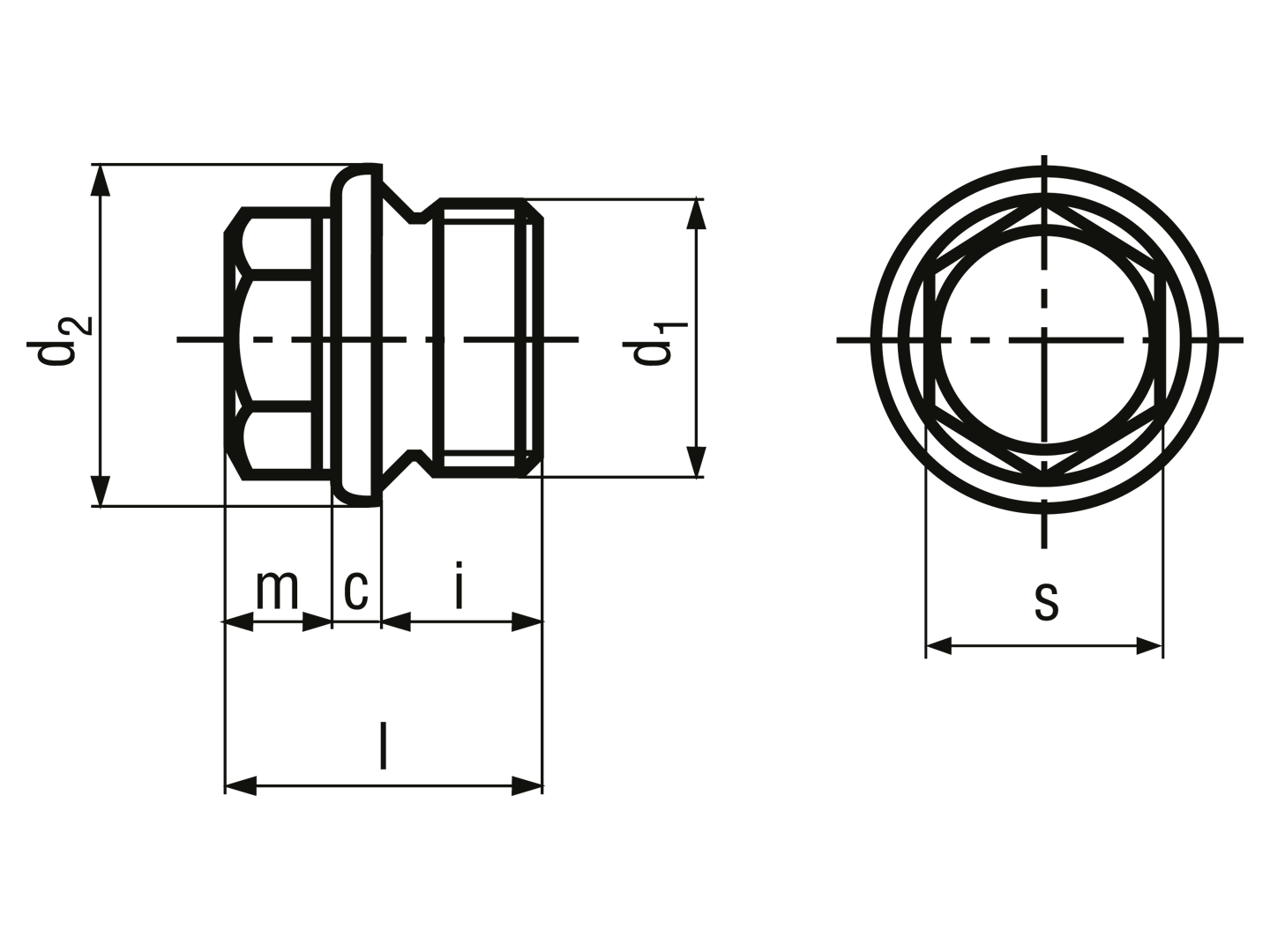 Hex head screw plugs with shoulder, metric fine thread with sealing ring