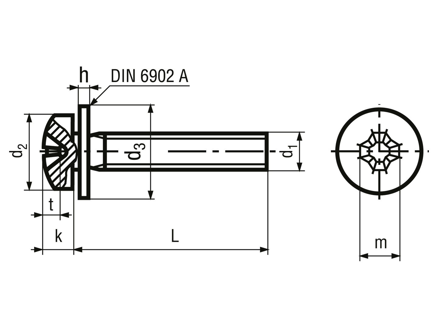 Phillips pan head assembled (SEMs) screws form H, with captive flat washer DIN 6902 A