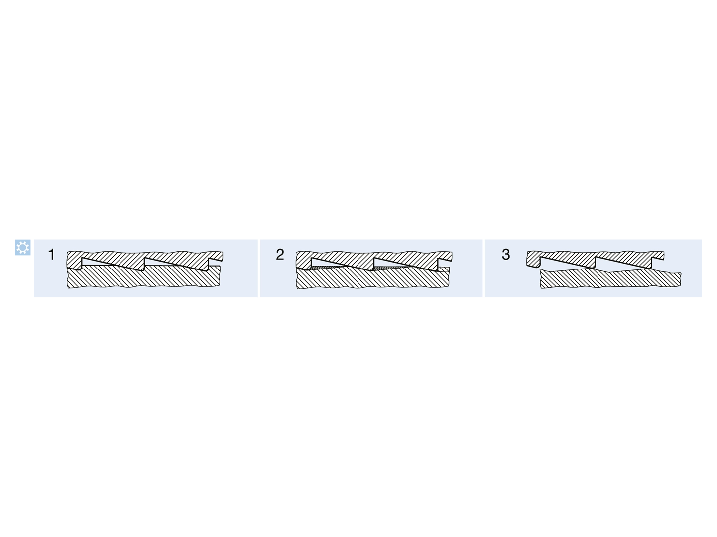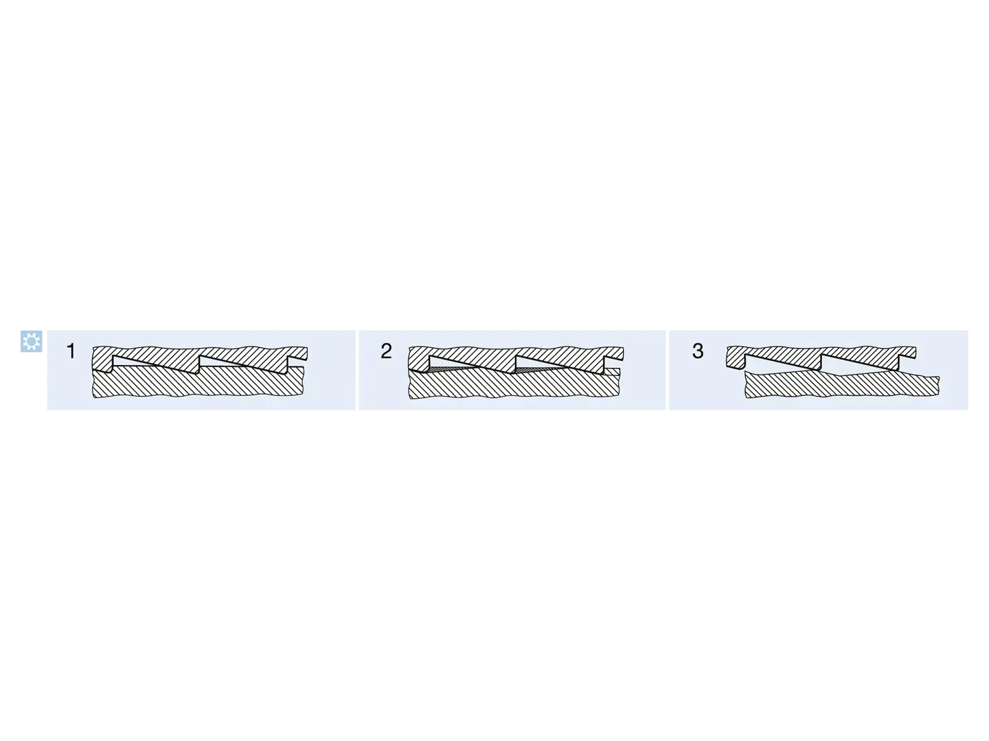 1. Tightening: locking teeth lightly engage in the bearing surface