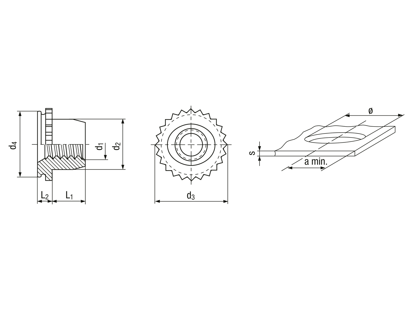 PEM® FE/FEO - Miniatur self-clinching lock nuts with UNC thread, for metallic materials