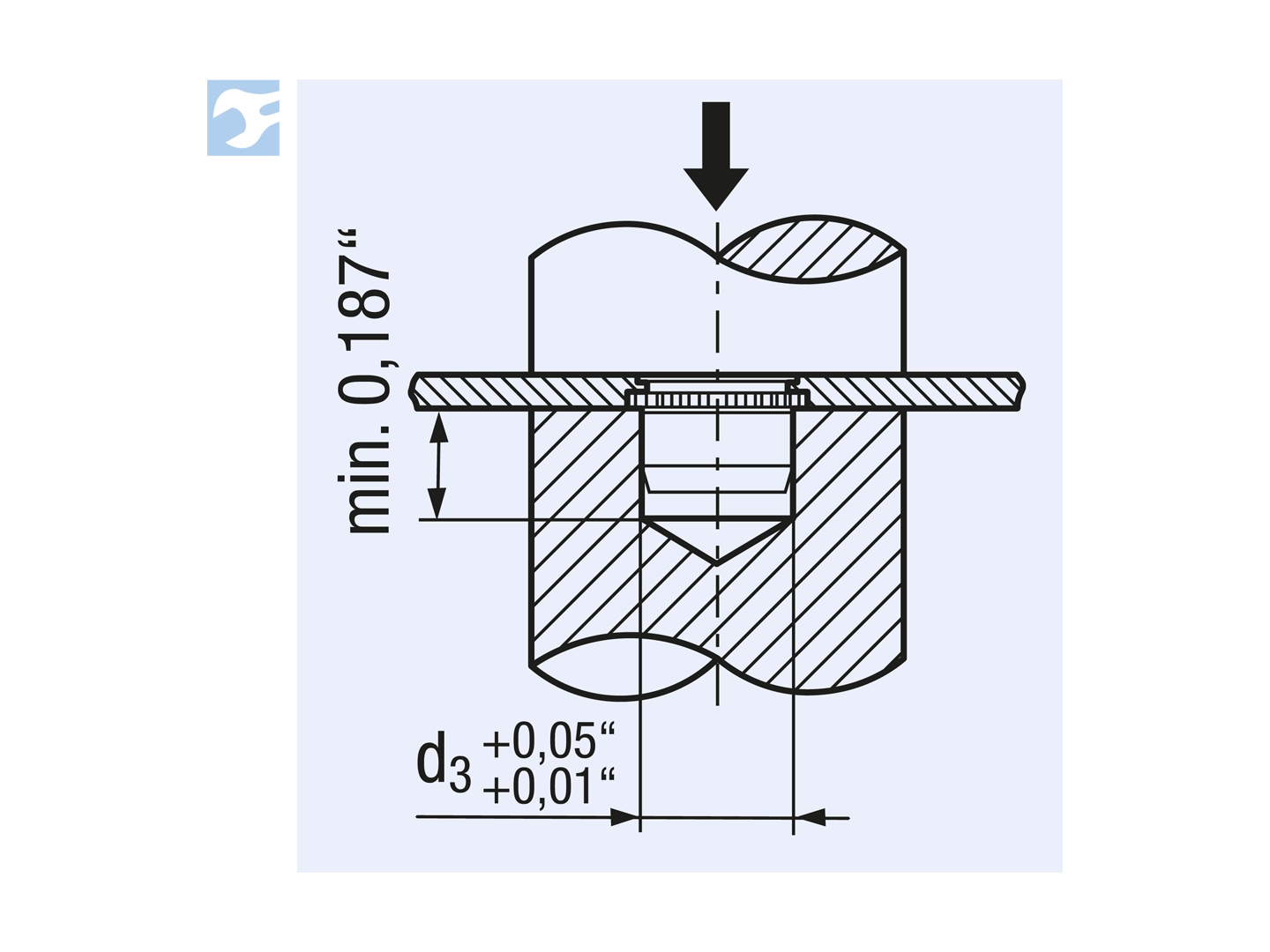 DescriptionProduct featuresLocking element: inch - nylon blue For use in sheet hardness max. HRB 70AssemblyVariants