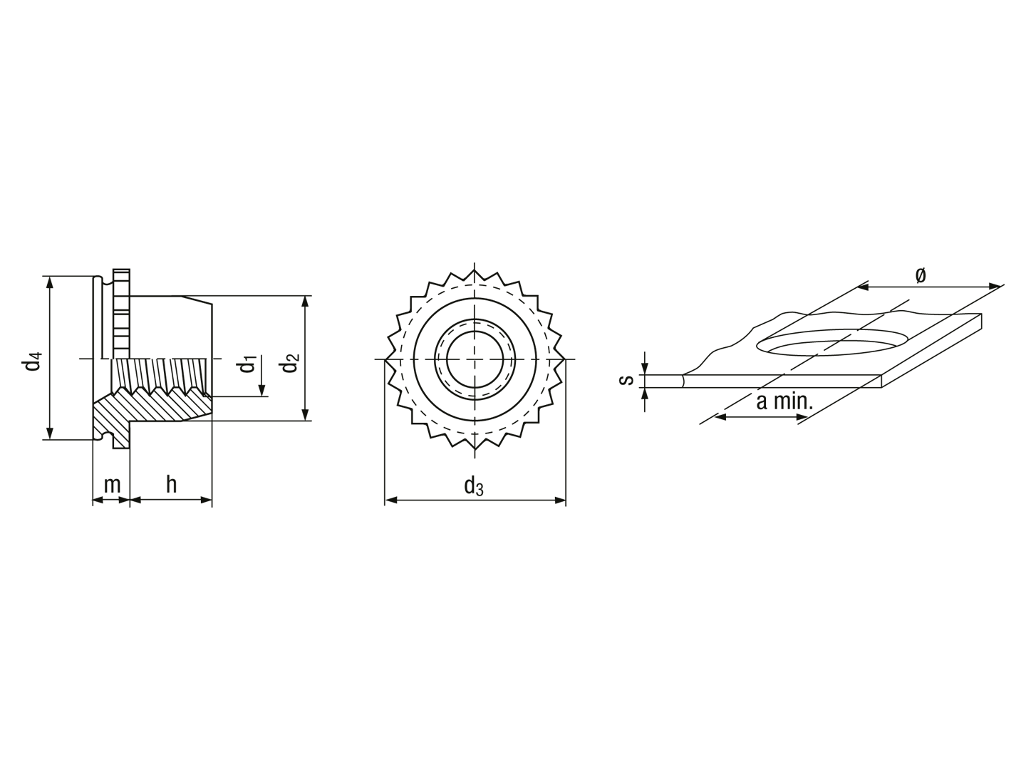 Miniatur self-clinching nuts with UNC thread, for metallic materials