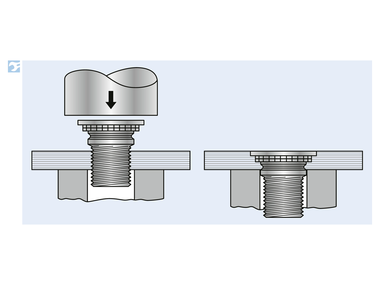 Self-clinching threaded studs with UNF thread, for metallic materials