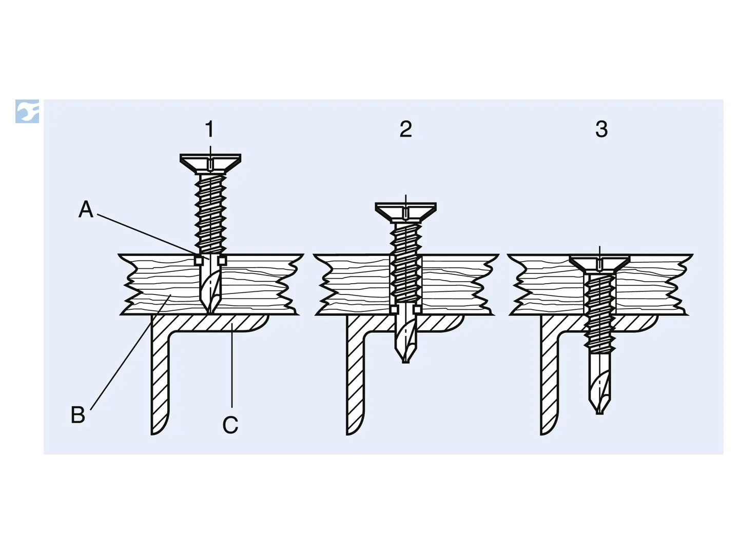 3. The screw drills its own core hole into the substructure and forms a thread so that the timber will be fastened to the substructure. The ribs under the head trimming the drilled hole for a clean countersink.