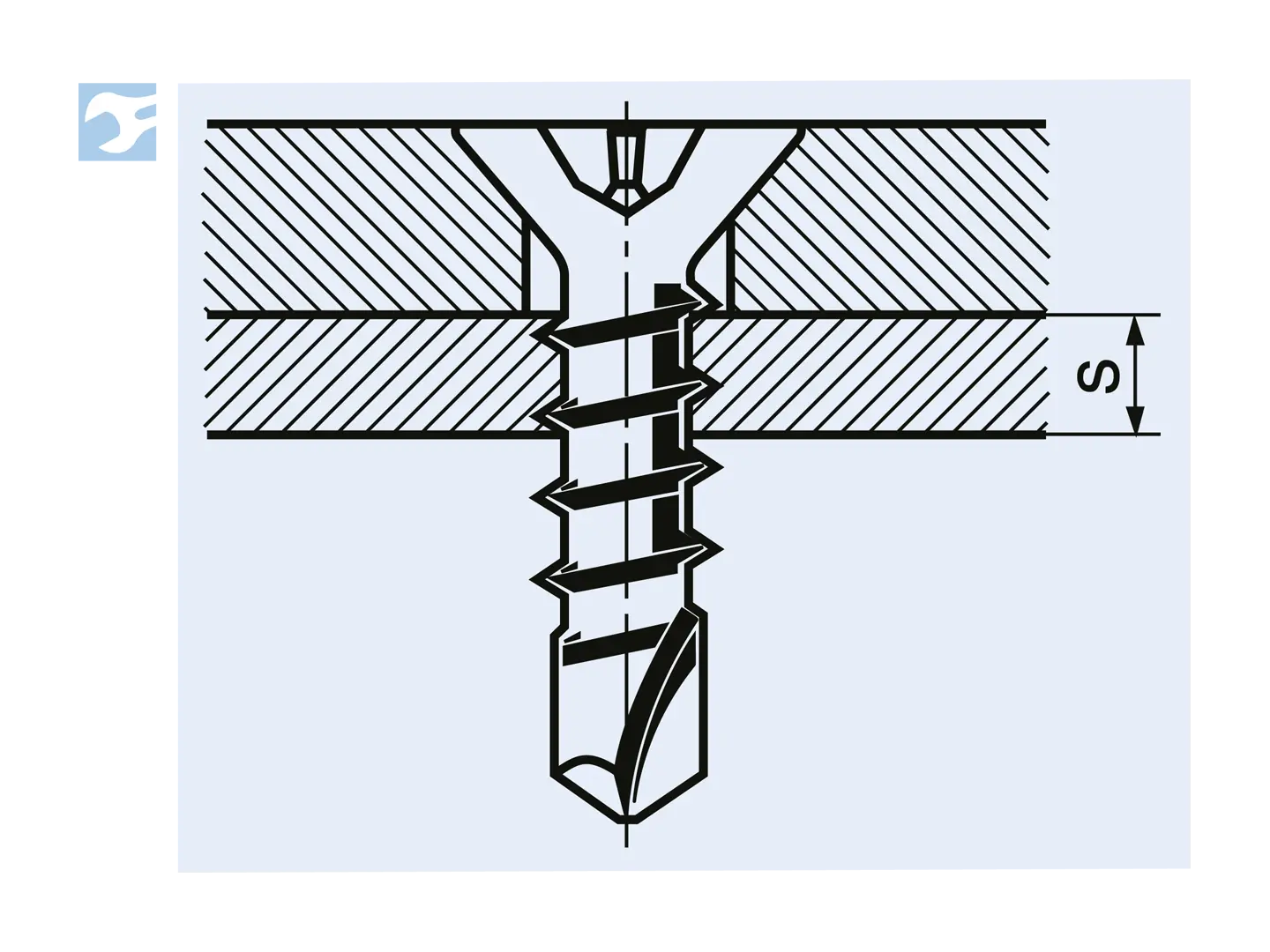 The low torsional strength and surface hardness of the self-drilling screws of stainless steel sets the limits to connect component strength and present surface condition. Setting for rotational speed, tightening torque or to establish a possible core hole shall be determined experimentally.
