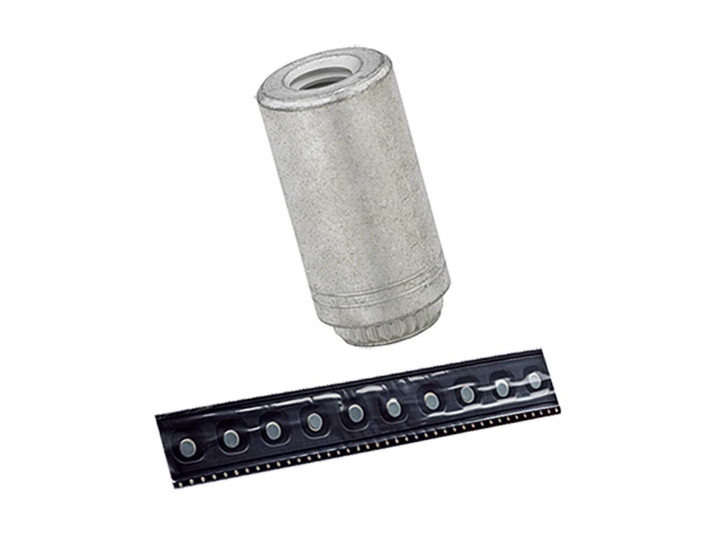 Surface mount threaded spacers without adhesive patch, on tape for PC boards