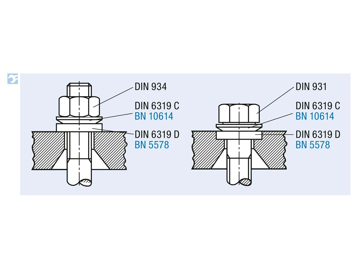For slotted and large through-holes use Conical seats (tempered) according to DIN 6319 Type G. Supply possibilities on request.