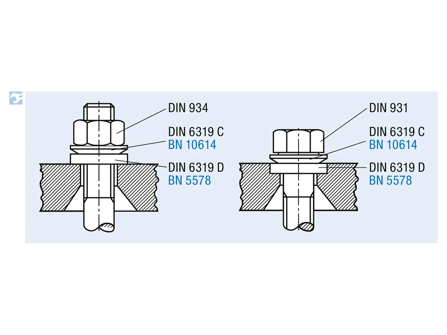 For slotted and large through-holes use Conical seats (tempered) according to DIN 6319 Type G. Supply possibilities on request.Assembly