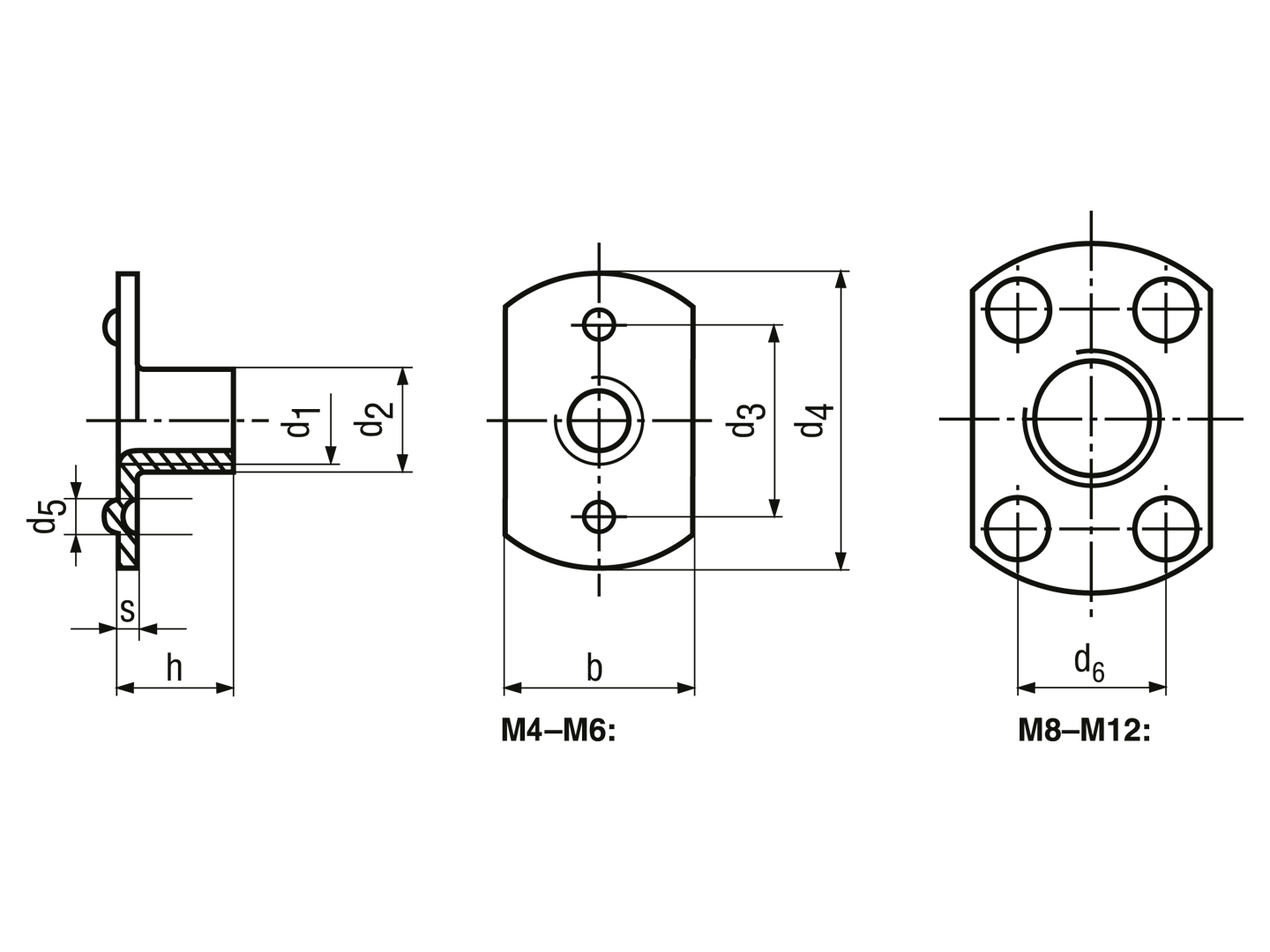 DescriptionProduct featuresM4 - M6: with 2 welding projections M8 - M12: with 4 welding projections Additional informationOther configurations upon request e.g., weld projections on top with drilled flangeVariantsCAD