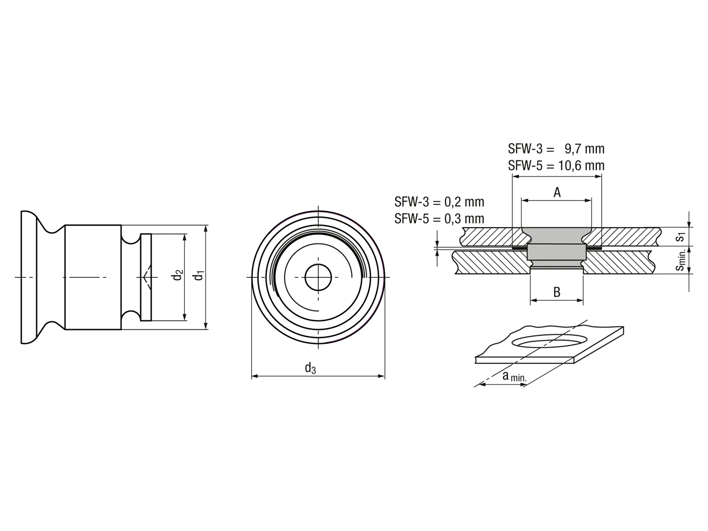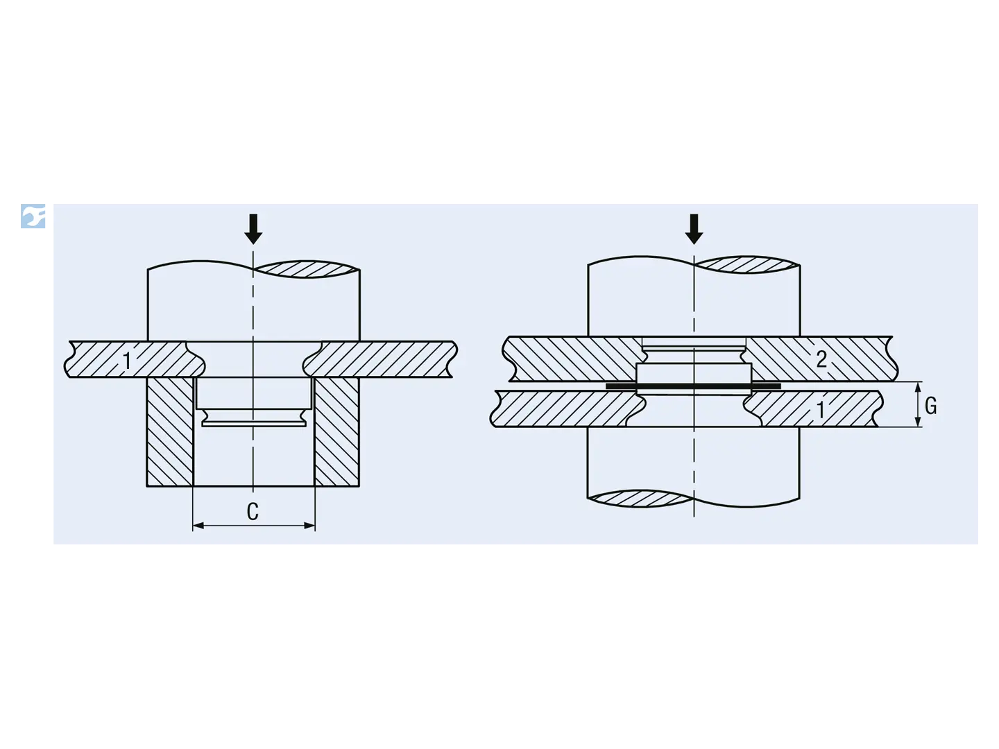 DescriptionProduct featuresFor use in sheet hardness max. HRB 80 With Curved spring washers Additional informationFor permanent joining of two metal sheetsAssemblyVariantsCAD