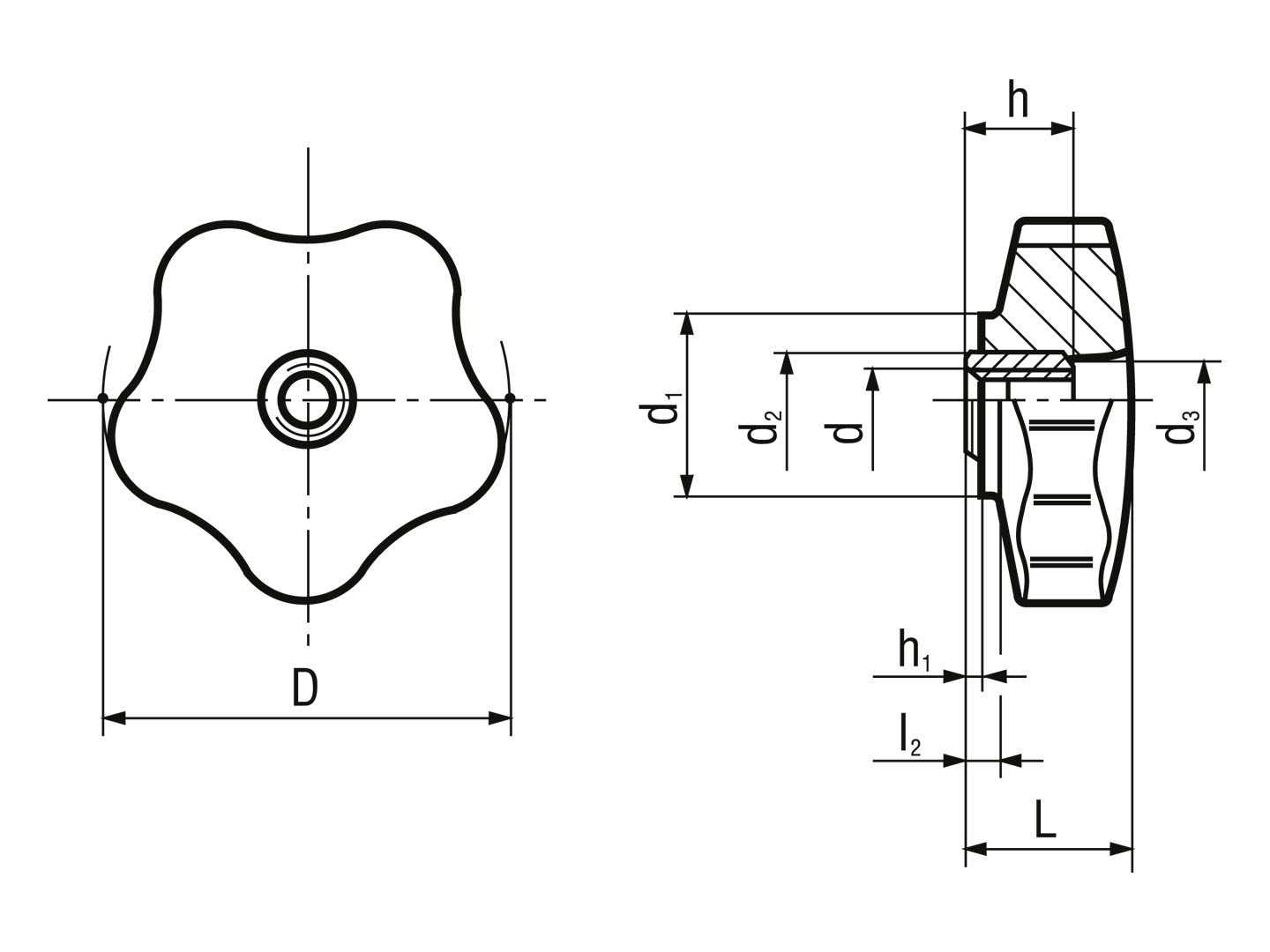 BN 14141ELESA® VC.253 - Lobe knobs shortened series, with black-oxide steel boss and tapped through-hole