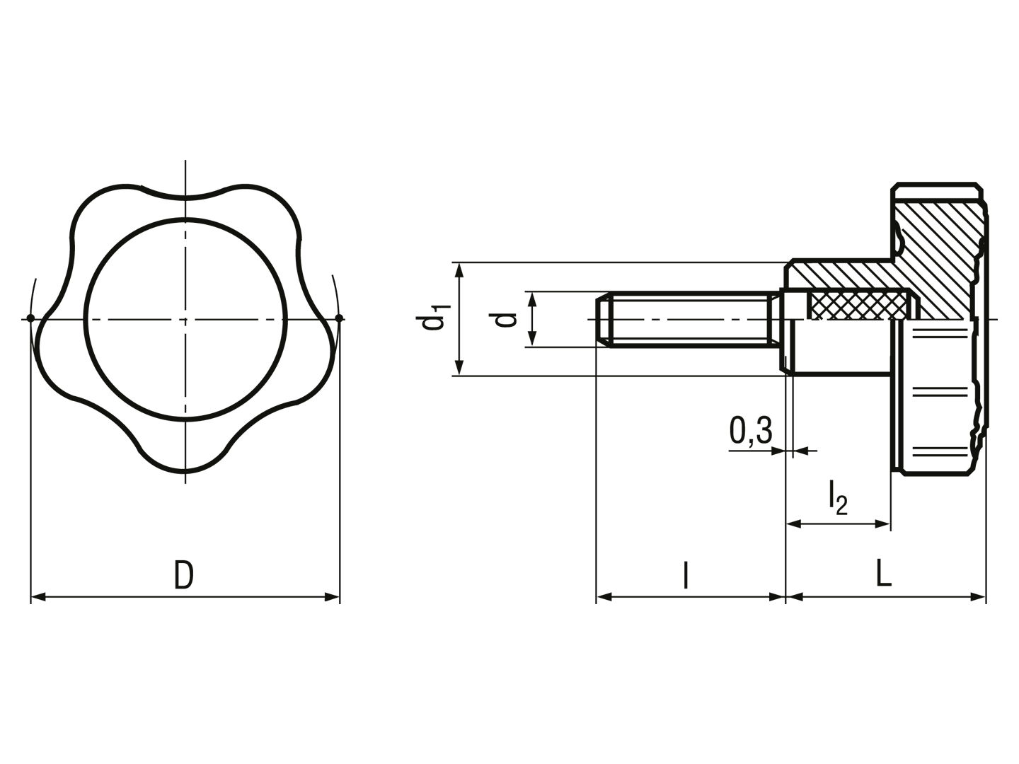 BN 20080ELESA® VC.692 p - Lobe knobs with threaded stud, steel zinc plated