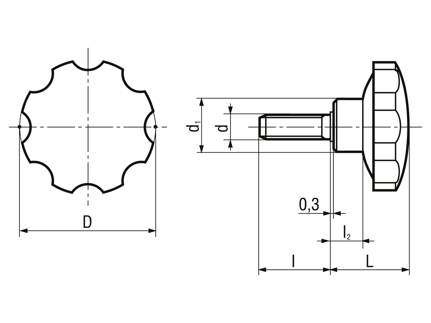 Lobe knobs with threaded stud, steel zinc plated