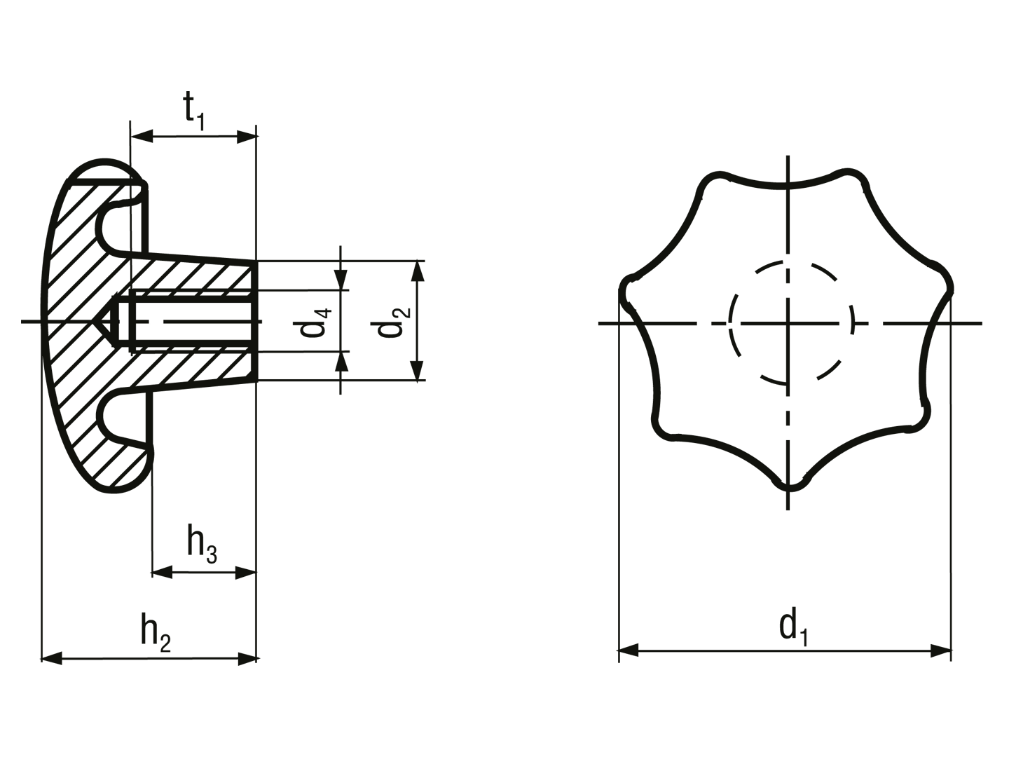 HALDER EH 24690. - Star knobs with tapped blind hole