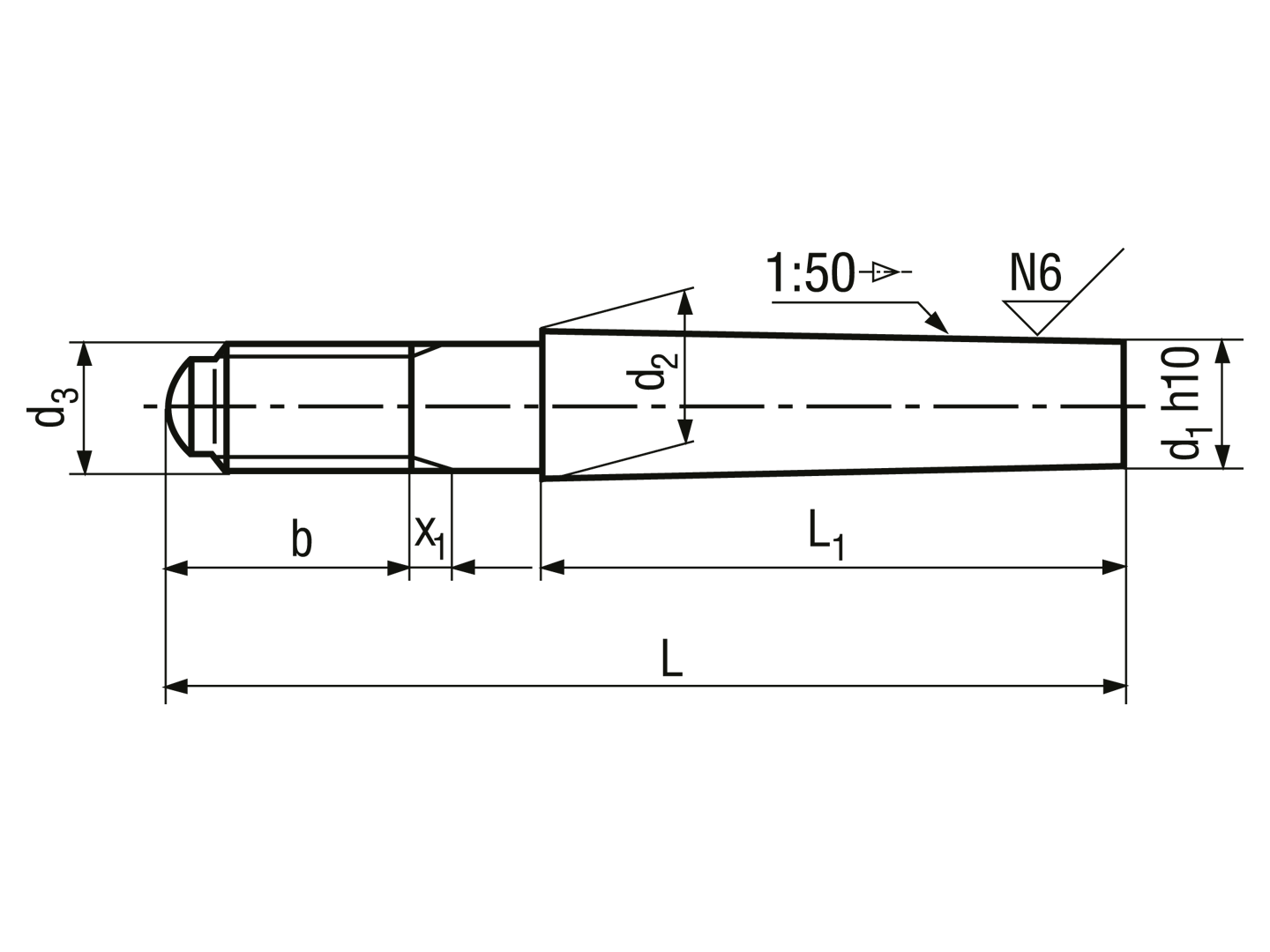 BN 863 | DIN 7977-~ISO 8737Taper pins with thread constant threaded stem length, unhardened, groundFree-cutting steel, plain
