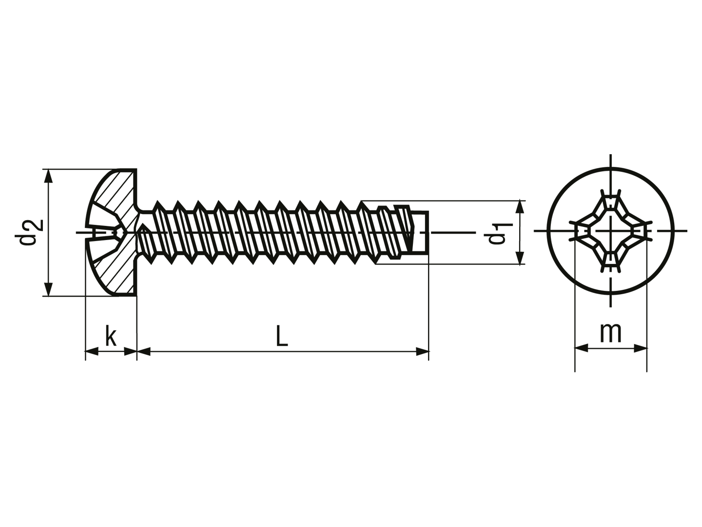 - DIN 7981 F (Standard withdrawn) ~ISO 7049 ~UNI 6954 B ~ČSN 021235