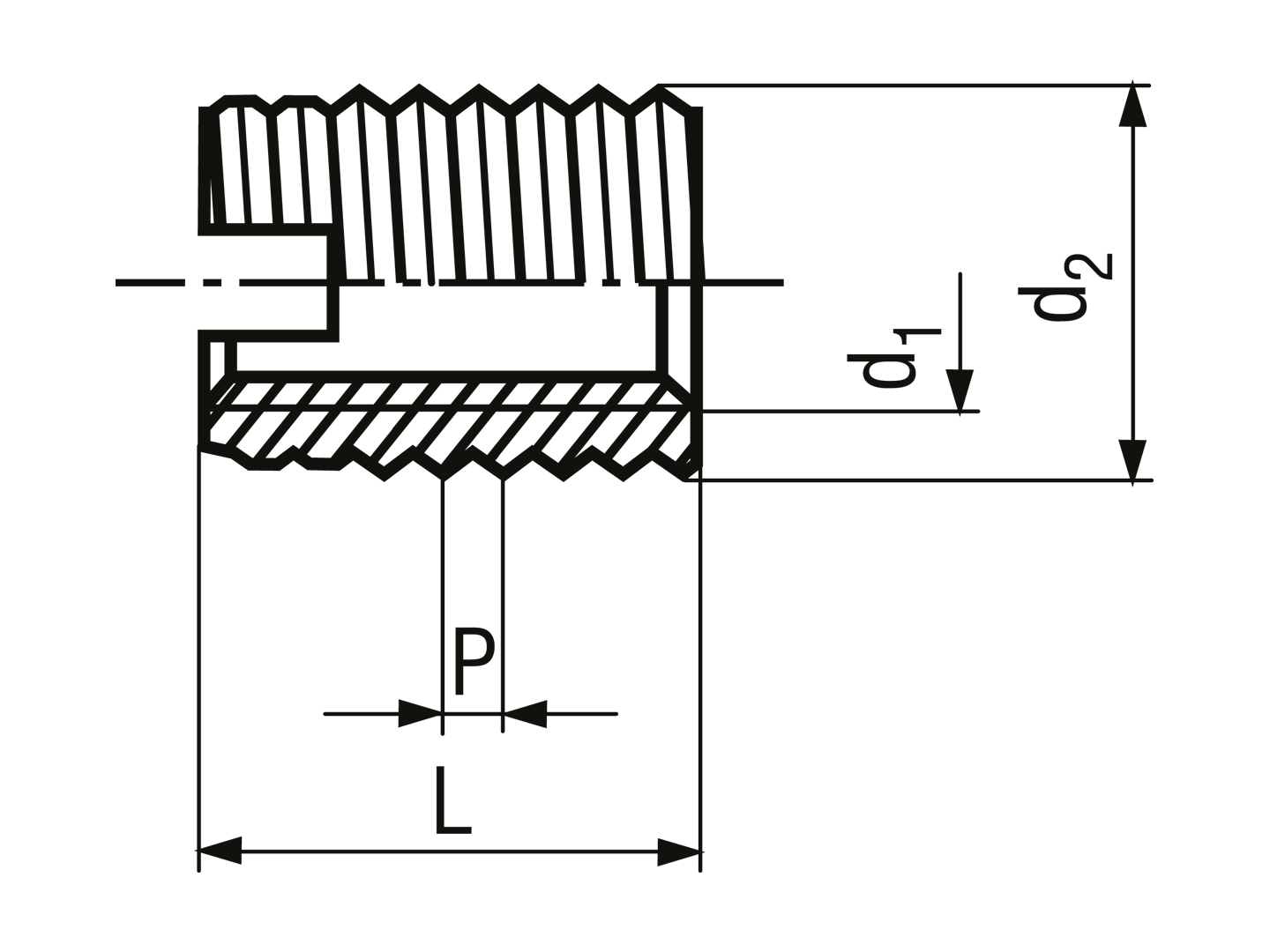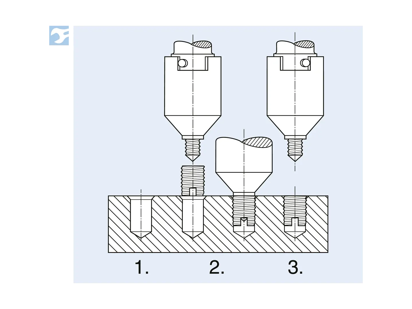 2. Drive the insert into the workpiece (insert is cutting its own thread)