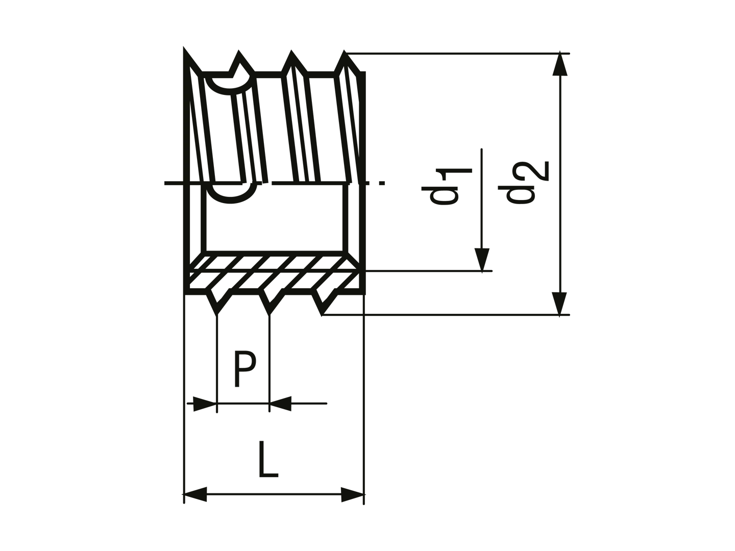 BN 2091Ensat® SB 307/308 - Self-cutting thread inserts with cutting hole, for light metals, thermoplastics and thermoset plastics