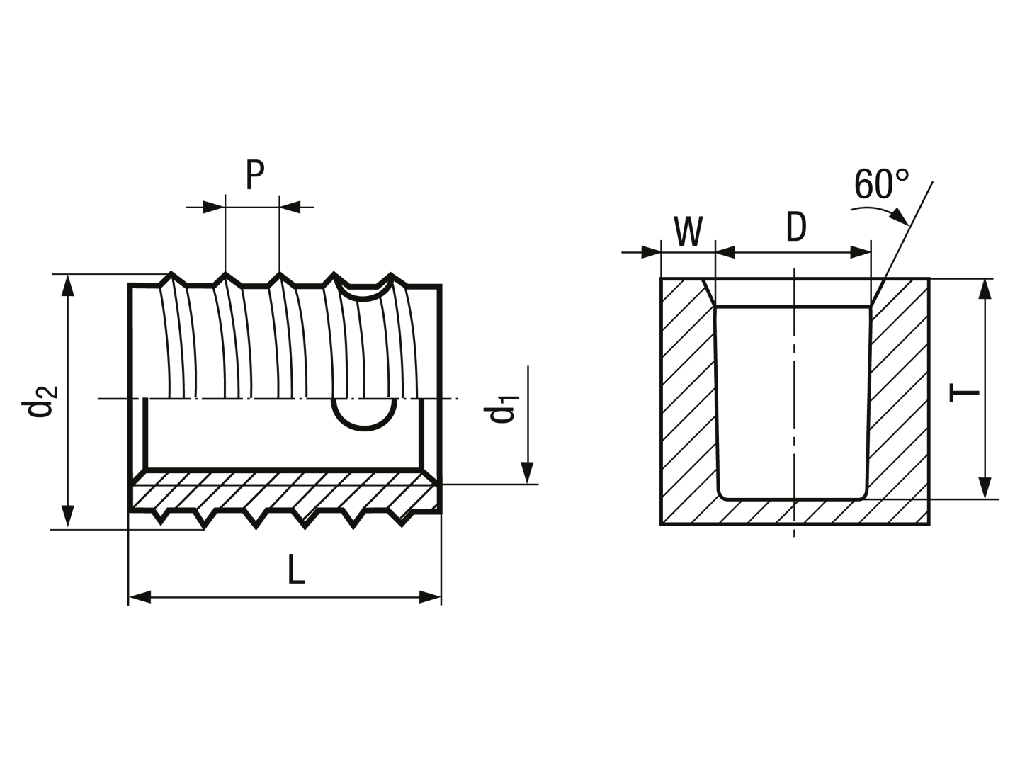 FASTEKS® FTI SC-07/08 - Self-cutting thread inserts with cutting hole, for light metals, thermoplastics and thermoset plastics