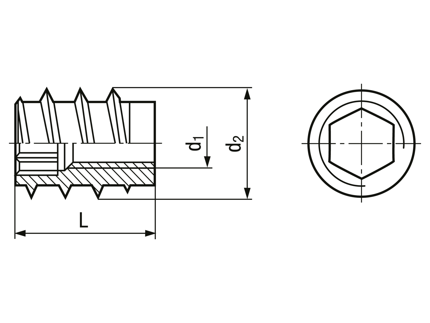 BN 1210Rampa® SK - Self-cutting thread inserts without head, with hexagon socket, for hardwood