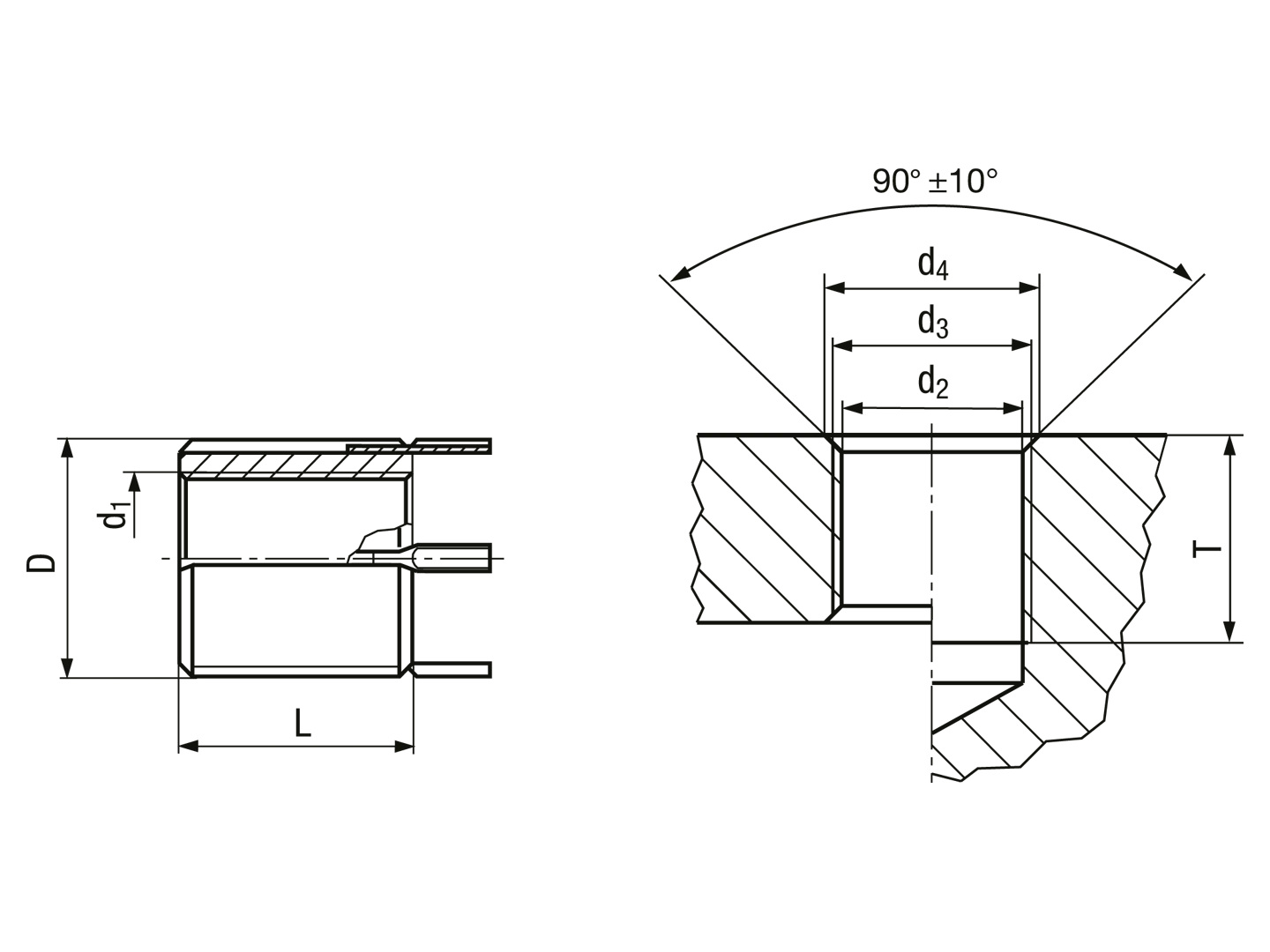 KEENSERTS® KNM - Threaded inserts with locking kees light duty, with free running thread
