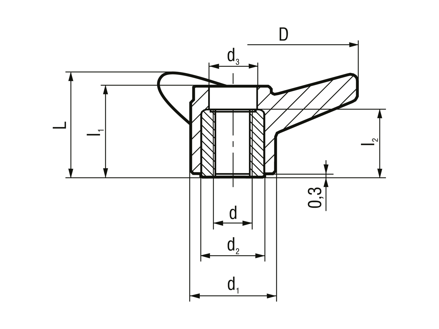 BN 14128ELESA® VB.639 FP - Three-arm knobs with brass boss and tapped through-hole