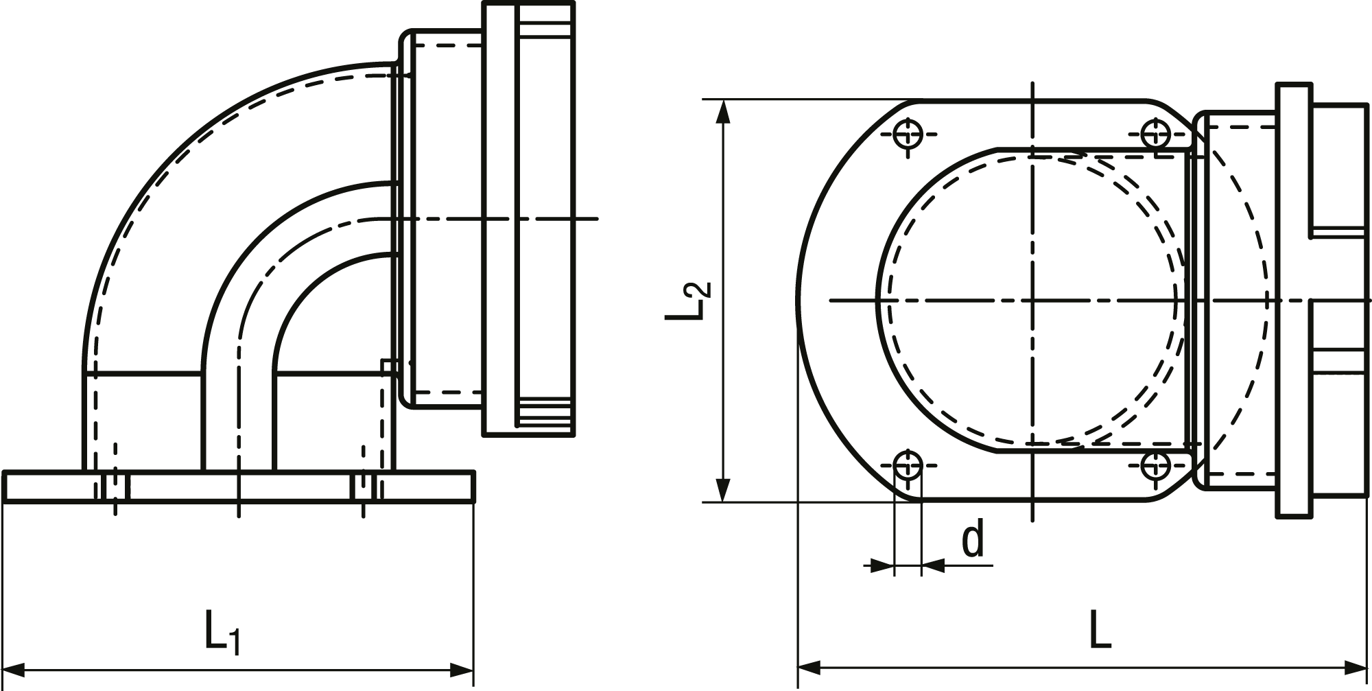 Elbows 90° with flange for tubings
