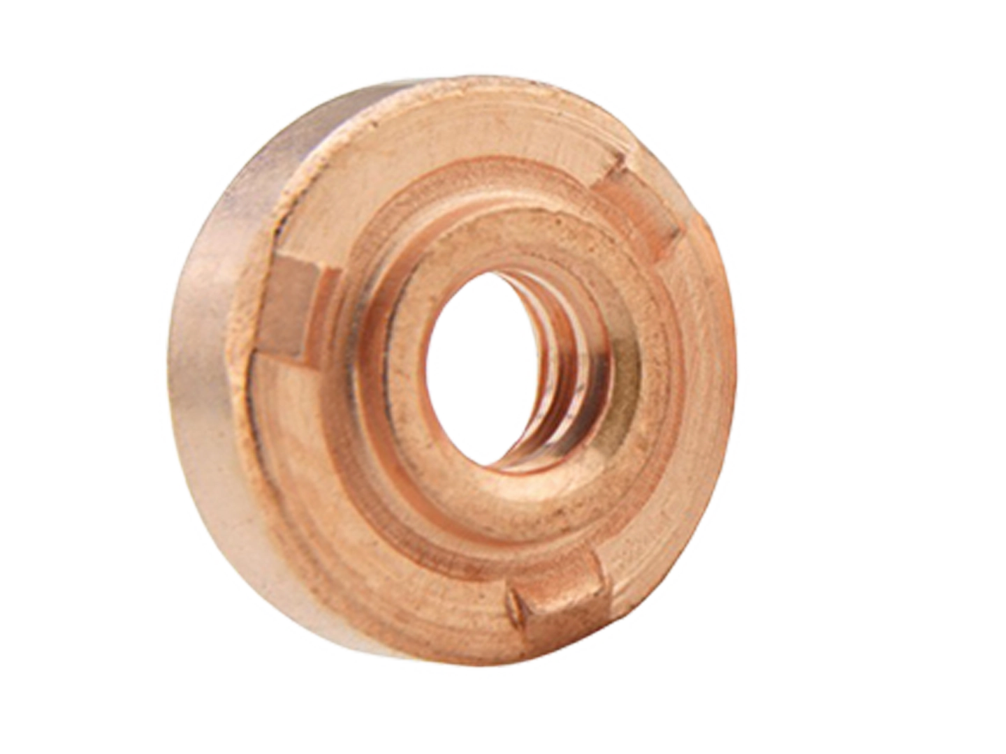 Three weld projections guarantee good electrical contact and prevent burn-through in thin sheets. Positioning shaft makes it easier to insert the nut and protects threads from welding spatter. Round design is particularly suitable for automatic feeding.