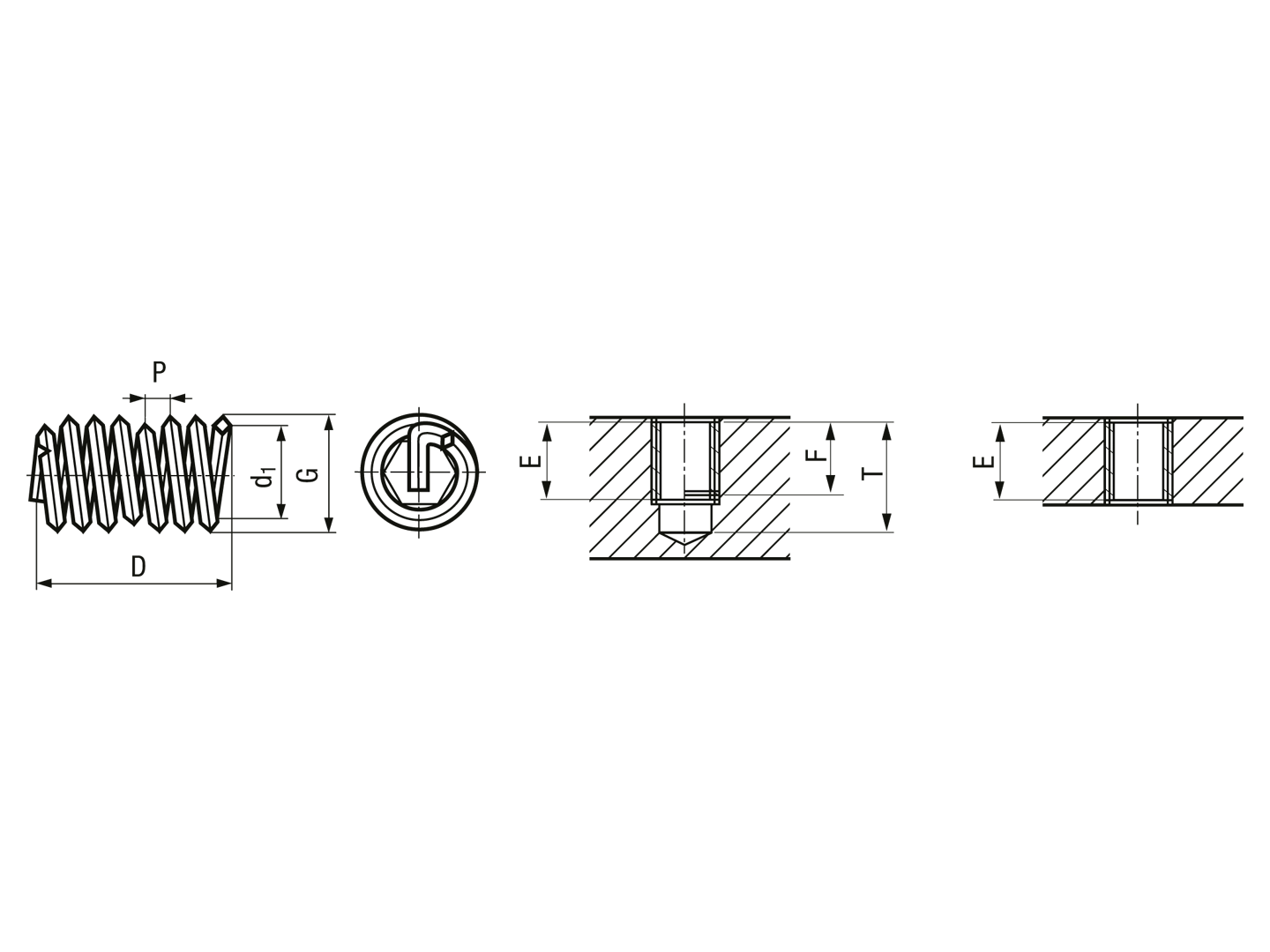To create a through hole, the drive pin is broken with the pin breaker. In the case of ground hole threads, the stud can be adjusted to the max. Screw – in depth remains in the thread.