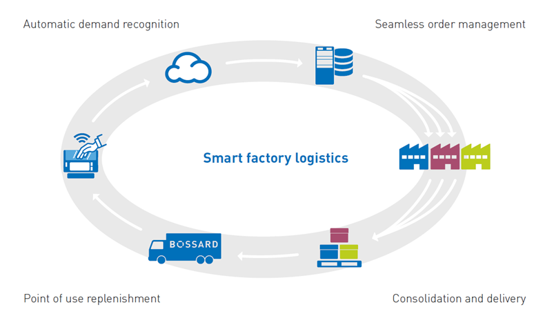 3. Bossard consolidates the ordered items into one shipment which is sent to the customer.
