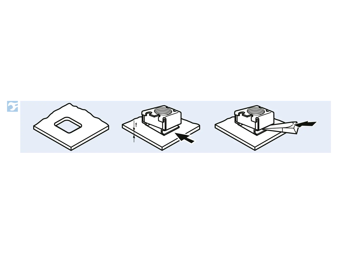 将卡式螺母的一边卡入孔内固定。