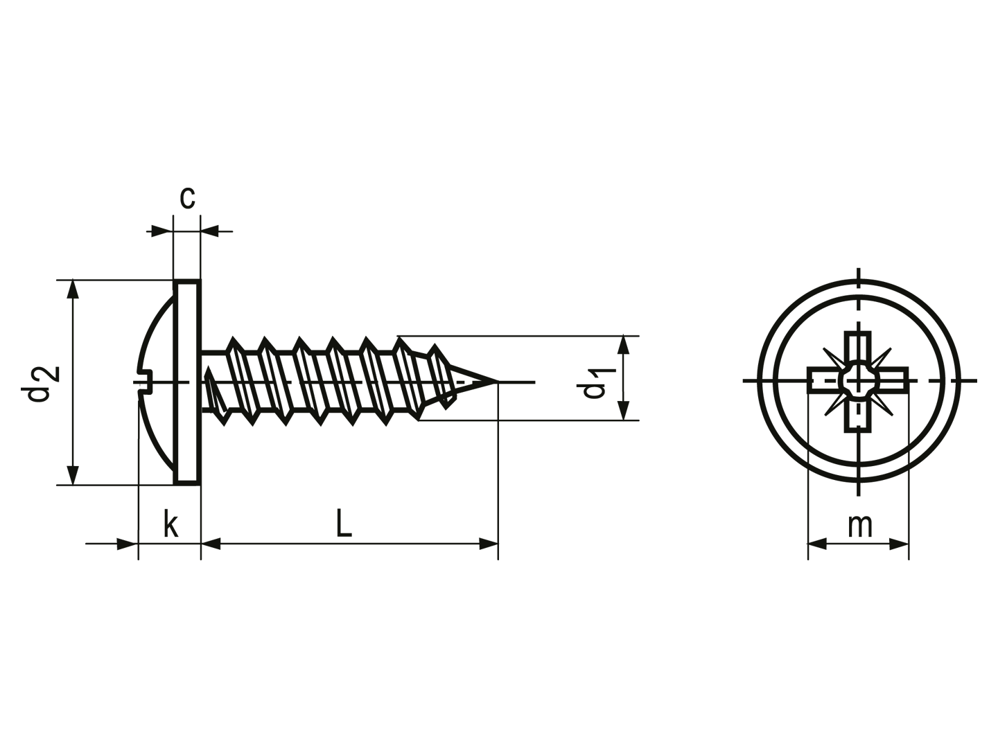 十字槽盘头自攻螺钉 Z型十字槽,带C型锥尾